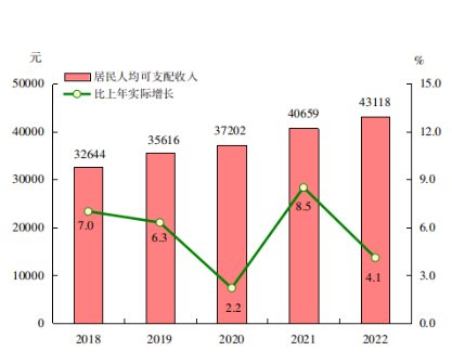 圖10 2018-2022年(nián)居民(mín)人(rén)均可(kě)支配收入及其實際增長(chβ÷£áng)速度